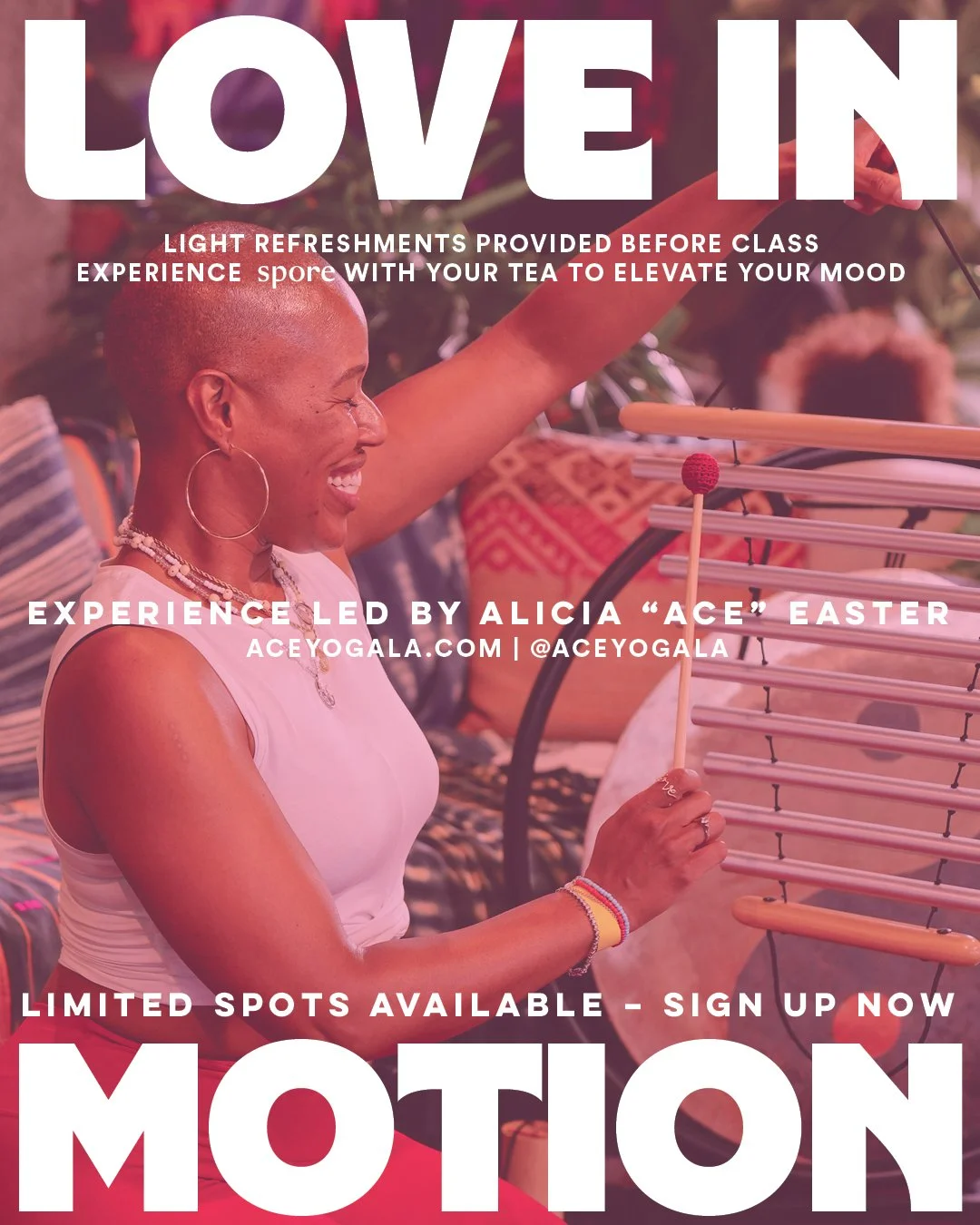Love in Motion is a softer, more sensual expression — an evening of rose tea, elevated mood, and immersive sound healing designed to help you shed winter, clear stagnant energy, and ignite the fire within.